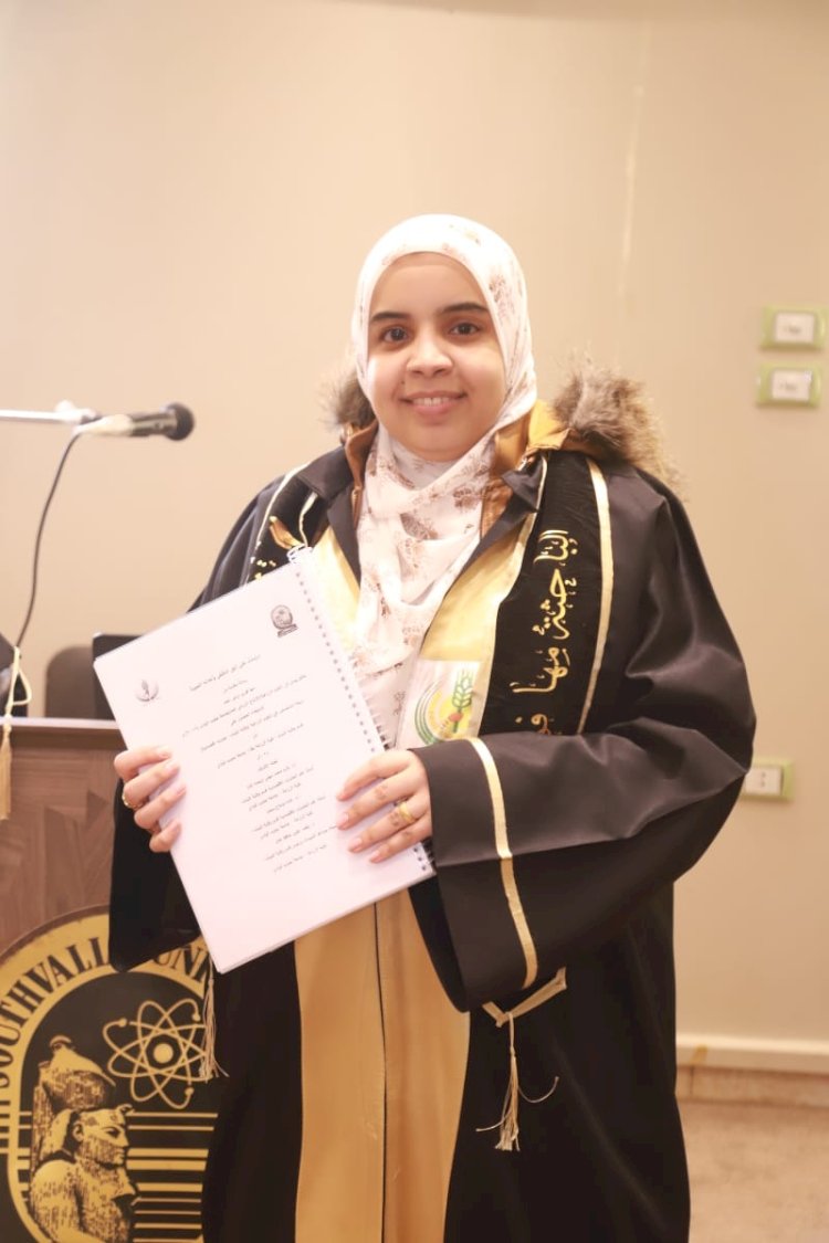 وفي نهاية المناقشة، أوصت لجنة المناقشة والحكم بمنح الباحثة درجة الماجستير في العلوم الزراعية "وقاية النبات حشرات اقتصادية".