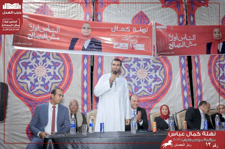 علي أرض قرية الأحايوة شرق مركز أخميم محافظة سوهاج مسقط رأس الدكتورة نهلة كمال عباس مرشحة إنتخابات مجلس النواب دائرة أخميم وساقلته والكوثر عن حزب العدل "رمز الحصان رقم ١٢" قام الحزب بعقد مؤتمرا جماهيريا واسعا حضره لفيف كبير من مؤيدين وداعمين وممثلين عن أهالي الدائرة بالكامل سواء من المدن أو القري وسط توافد شعبي غير متوقع بالإضافة إلي حضور قيادات الحزب وبعض السادة نواب الحزب البرلمانيين وبعض مرشحينه علي القائمة الوطنية. ..كان في إستقبال الضيوف أهالي قرية الأحايوة شرق الذين يدعمون إبنة قريتهم ويساندونها في خطواتها نحو البحث عن رحلة الوصول إلى قبة البرلمان لخدمة وطنها وأهالي دائرة مركز أخميم وساقلته والكوثر مما يعبر عن رقيهم وترحيبهم بكل من حضر هذا اللقاء الجماهيري لدعم الدكتورة نهلة كمال عباس الذي أشاد به جميع الحضور. وإستهل المؤتمر بعزف النشيد الوطني لجمهورية مصر العربية وتشغيل الأغاني الوطنية لدعم الدولة المصرية ومؤسساتها تحت قيادة فخامة الرئيس عبدالفتاح السيسي رئيس الجمهورية ربان وقائد سفينة الوطن ثم أعقبه ترحيبا بالسادة الحضور وتلاوة ما تيسر من أيات الذكر الحكيم للقارئ والمنشد الديني الشهير الشيخ نبيل السيد الإحياوى الذي أثرى الليلة بصوته القرأني العذب وفي إطار هذه الفاعليات أكدت المرشحة نهلة كمال أن حملتها الإنتخابية تركز على وضع إحتياجات المواطنين في المقام الأول، مشددة على أن شعارها في الإنتخابات هو "الناس أولاً.. مش المصالح". قالت "كمال" خلال كلمتها في المؤتمر الإنتخابي إن المرحلة ،الحالية تتطلب تمثيلًا حقيقيًا يعبر عن المواطنين ويعطي الأولوية لقضاياهم، بعيدًا عن أي مصالح شخصية. وأضافت مرشحة حزب العدل أن أهل سوهاج معروفون بالوعي والانتماء والكرامة، وأنها تراهن على دعمهم وثقتهم في مشروع الحزب القائم على دعم الطبقة المتوسطة. من جانبه أكد حسام حسن أمين التنظيم بالحزب على أهمية دعم مرشحة الحزب، حيث تقدم رؤية مختلفة، وتمتلك برنامجا واضحا قائما على لمس احتياجات المواطنين. من جانبها أكدت الدكتورة صافيناز طلعت أمينة الصحة بمحافظة الغربية ومرشحة القائمة الوطنية عن الحزب أن ترشح "نهلة كمال" يأتي إيماناً من الحزب بأن المرأة الصعيدية قادرة على صناعة الحدث، وأن تكون نموذجا يحتذى به في الشارع السياسي. حضر اللقاء لفيف من قيادات حزب العدل على رأسهم النائب أحمد دراج عضو مجلس النواب وأمين الحزب بالغربية، وعدد من مرشحي الحزب بالقائمة الوطنية أبرزهم حسين هريدي، وصافيناز طلعت ، بالإضافة لاحمس يسري أمين الحزب بسوهاج، والدكتورة نانسي عوني أمين مساعد التدريب والتثقيف بالحزب، وعدد من قيادات الحزب بالمحافظة. ولم يسدل الستار علي هذه الأمسية الرائعه فحسب بل كان للحاضرين من أصحاب القامات بالقرية إلقاء كلمات الدعم والمساندة والتأييد للدكتورة نهلة كمال نيابة عن أهالي دائرة أخميم وساقلته والكوثر. وحرص الحاج السيد عبداللطيف عمدة قرية الأحايوة شرق علي الترحيب بالسادة الحضور من قيادات ونواب حزب العدل والحضور من أهالي دائرة أخميم وساقلته والكوثر وثمن لهم تواجدهم لدعم الدكتورة نهلة كمال إبنة القرية كما أعرب عن دعمه وتأييده ووقوفه خلفها موجها رسالته إلي أهالي القرية وجميع أهالي الدائرة بدعمها ومساندتها والتصويت لها و دعوة كل من له حق الإنتخاب للخروج لمنحها صوتهم . كما أعرب المحامي الشهير ورجل القانون الأستاذ جمال طلحه عيسى عن دعمه ووقوفه قلبا وقالبا خلف نهلة كمال لأنها تستحق المساندة كونها فتاة شابة جريئة وطموحة وتحمل أمال وألام أهلها علي عاتقها متمنيا لها النجاح والتوفيق وفي كلمة أخري تحدث فيها الشيخ محمود حافظ سالم أحد أهم القامات الدينية والأزهرية والشعبية داخل محافظة سوهاج الذي أعرب عن دعمه للدكتورة نهلة كمال في معركتها الشريفة داعيا جموع أهالي دائرة أخميم وساقلته والكوثر للخروج إلي صناديق الإقتراع ومنح أصواتهم لها حتي تكون صوتهم تحت قبة البرلمان كما أ