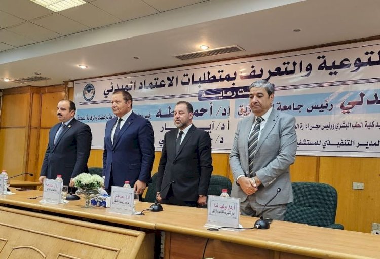 وخلال كلمته توجه دكتور أحمد عناني عميد كلية الطب، بالشكر للرئيس عبدالفتاح السيسي رئيس الجمهورية، لدعمه الكامل لمنظومة التأمين الصحي الشامل، مؤكدًا أنه لابد من وجود معايير صارمة ومحددة للرقابة الصحية، للإرتقاء بالمنظومة وتقديم خدمة صحية متميزة ذات جودة عالية مستدامة سهلة الوصول متاحة لجميع المرضى على جميع المستويات، والتحسين المستمر لها.