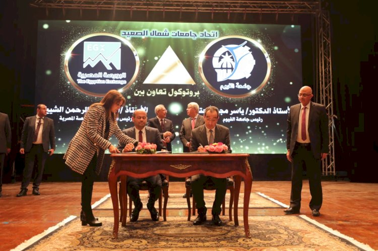 والمعهد التكنولوجي العالي للعلوم الصحية التطبيقية ببني سويف، والبورصة المصرية، وشركة بورتلاند المنيا للأسمنت، وشركة تيتان مصر للأسمنت، وشركة القناة للسكر) وعدد من الشركات في المجالات الصناعية والخدمية المختلفة بالإقليم. وأوضح الوزير أن بروتوكول تحالف إقليم شمال الصعيد، هو السادس بعد بروتوكولات تحالفات الجامعات والمؤسسات الإنتاجية والصناعية والخدمية في (إقليم المنطقة الشمالية، وإقليم وسط الصعيد وإقليم جنوب الصعيد، وإقليم الدلتا، وإقليم مدن القناة وسيناء)، مشيرًا إلى أن هذا التحالف يُسهم في الدفع بمعدلات التنمية في إقليم شمال الصعيد، عبر وضع حلول علمية وخطط تنفيذية لكافة المشكلات والتحديات التى تواجه القطاعات الزراعية والصناعية والمؤسسات الإنتاجية المختلفة بالإقليم،