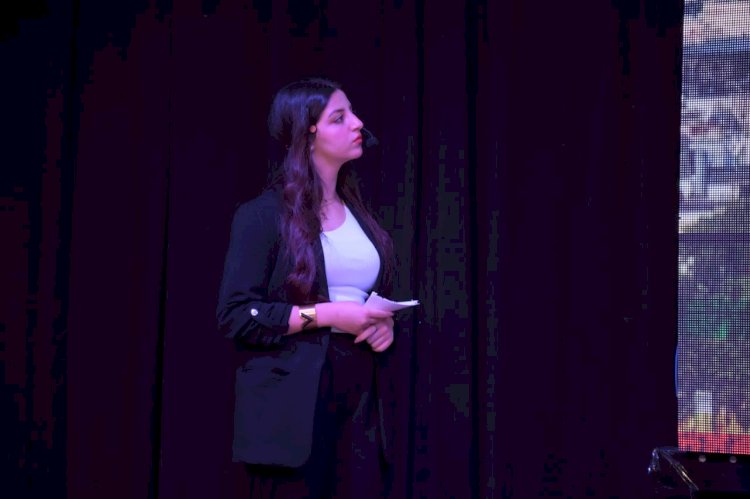 وازدانت شاشة المسرح بصور الرئيس عبدالفتاح السيسي ، حينما قامت الطالبة نوران أحمد هيبة بتقديم فقرة المجلة السياسية باللغة الفرنسية ، حيث استعرضت خلالها نظام الحكم في مصر ، وألقت الضوء على الانتخابات الرئاسية الاخيرة التي اكتسحها الرئيس السيسي من الجولة الاولى إلى جانب الانجازات التي تحققت مؤخراً وعلى راسها العاصمة الادارية الجديدة ، كما ازدانت شاشة المسرح بصورة علم فلسطين خلال تقديم بعض الفقرات .