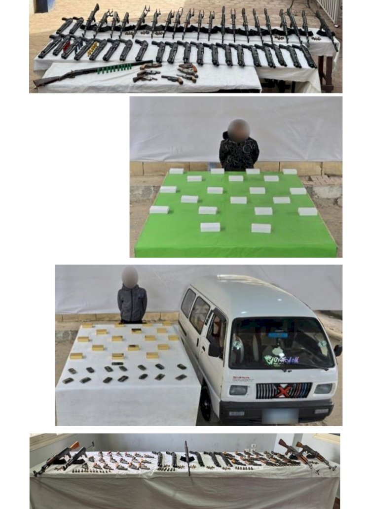 فى إطار مواصلة وزارة الداخلية توجيه الضربات الإستباقية للبؤر الإجرامية جالبى ومتجرى المواد المخدرة والأسلحة النارية غير المرخصة .. فقد أكدت معلومات وتحريات قطاعى (الأمن العام - مكافحة المخدرات والأسلحة والذخائر غير المرخصة) بالتنسيق مع أجهزة الوزارة المعنية قيام بؤر إجرامية بنطاق عدد من المحافظات تضم (عناصر جنائية شديدة الخطورة) بجلب كميات من المواد المخدرة والأسلحة النارية غير المرخصة تمهيداً للإتجار بها. عقب تقنين الإجراءات تم إستهدافهم بمشاركة قطاع الأمن المركزى وضبط عناصر تلك البؤر.. وبحوزتهم (قرابة نصف طن من المواد المخدرة المتنوعة "حشيش، هيدرو، شابو "آيس"، هيروين" - أكثر من 20 آلف قرص مخدر – 145 قطعة سلاح نارى " 35 بندقية آلية ، 37 بندقية خرطوش ، 73 فرد خرطوش" – كمية من الطلقات مختلفة الأعيرة).. هذا وتقدر القيمة المالية للمواد المخدرة المضبوطة بقرابة (72) مليون جنيه. تم إتخاذ الإجراءات القانونية.