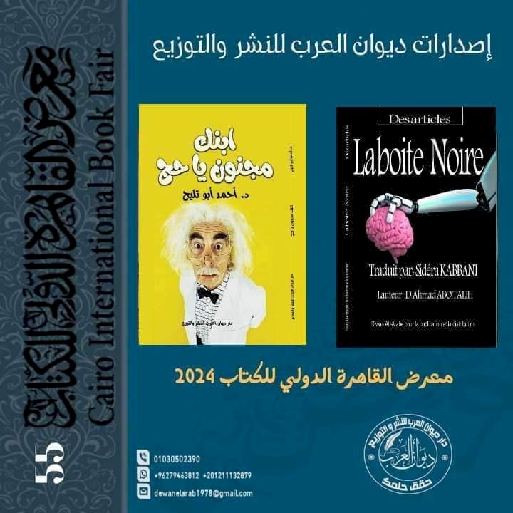 أعلن الدكتور / محمد وجيه . رئيس مجلس إدارة ( دار ديوان العرب للنشر الترجمة والتوزيع ) عن صدور الطبعة الأولى لكتاب ( الكون 25 ) وهو الاحدث من ضمن إصدارات الكاتب الدكتور / أحمد أبوتليح ز والذي سبق وصدر له العديد من الكتب ولقد تم ترجمة كتابه ( الصندوق الأسود ) إلى اللغة الفرنسية ( la boite noire)