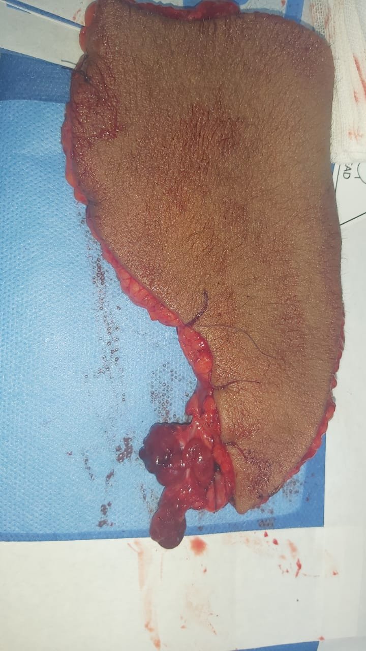 وبعد تقييم حالة الحالة وعمل الفحوصات اللازمة وعرض الحالة ع استشاريين جراحه التجميل بالقسم واخدنا قرار ان الطفل محتاج عمل شريحة جلديه حره free flap .