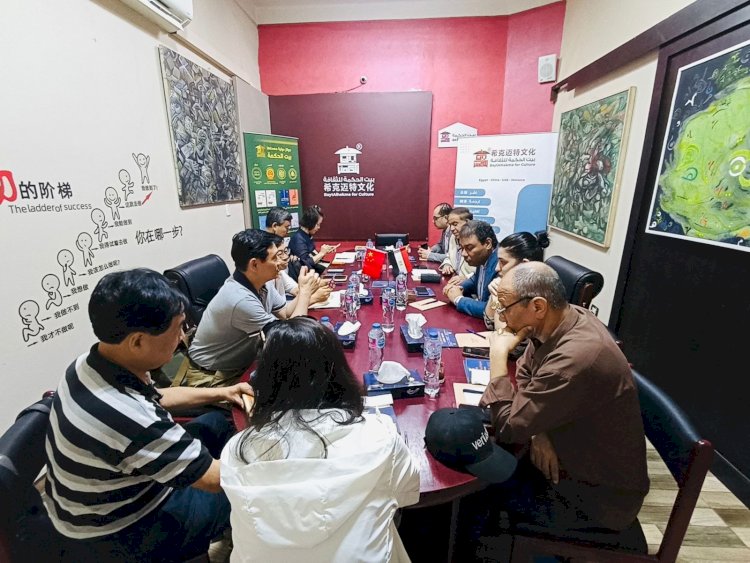استضافت مجموعة "بيت الحكمة للثقافة" في مقرها بالقاهرة وفدًا ثقافيًا صينيًا؛ نظمت "بيت الحكمة" على هامش زيارته جلسة نقاشية مصرية صينية شهدت نقاشًا ثريًا حول التبادل الثقافي المصري الصيني في مجالات الأدب والنشر والترجمة.