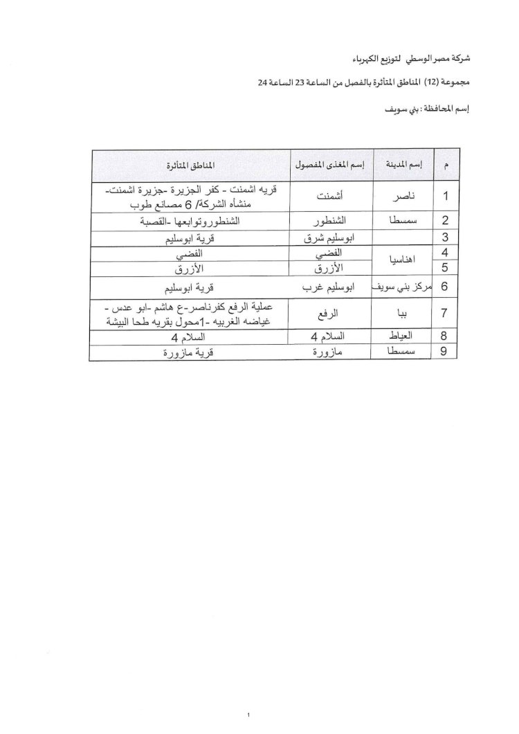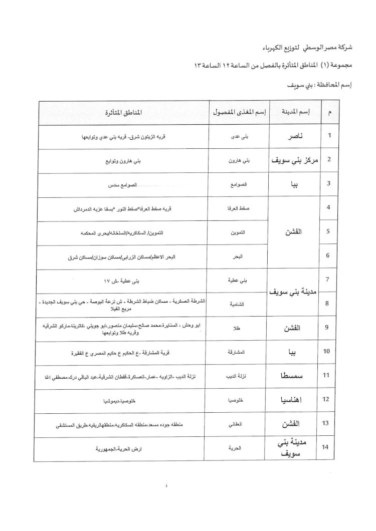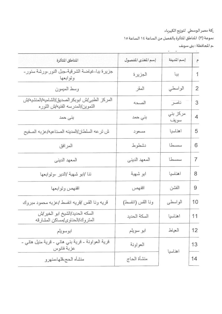 أعلن مجلس الوزراء، عن خطة تخفيف أحمال الكهرباء، التى سيتم تنفيذها بدءا من الساعة الثانية عشرة ظهر الغد الثلاثاء، فى المحافظات المختلفة، بعد التنسيق بين وزارتى الكهرباء والبترول