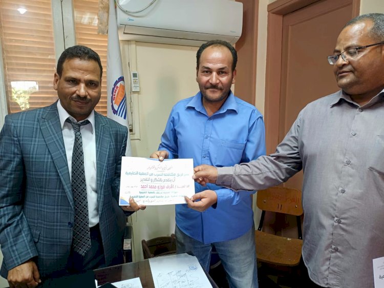 محمد علي محمد بالصف الخامس بمدرسة سمهود الابتدائية المشتركة لجهوده في إعادة اقرانه الي المدرسة بعد انقطاعهم عن التعليم