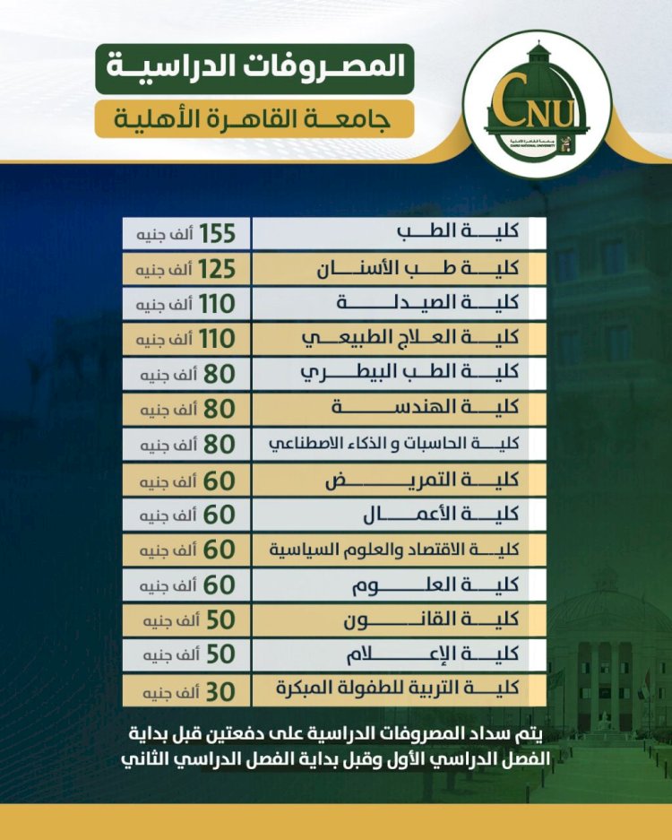 جامعة القاهرة الأهلية تعلن موعد وآلية سداد المصروفات الدراسية