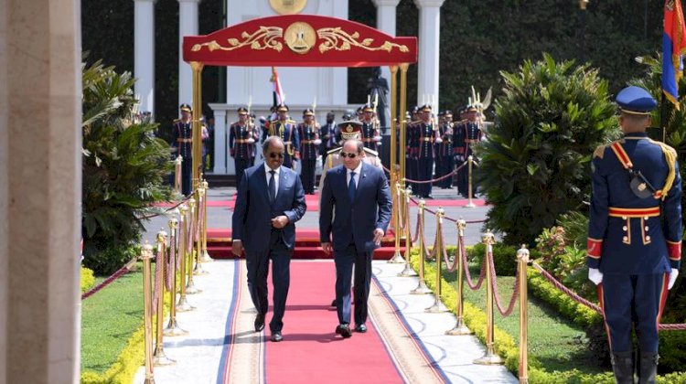 استقبل السيد الرئيس عبد الفتاح السيسي، اليوم بقصر الاتحادية، رئيس جمهورية الصومال، د. حسن شيخ محمود، الذي يقوم بزيارة رسمية لمصر لعدة أيام، حيث أُجريت مراسم الاستقبال الرسمي وتم عزف السلامين الوطنيين.
