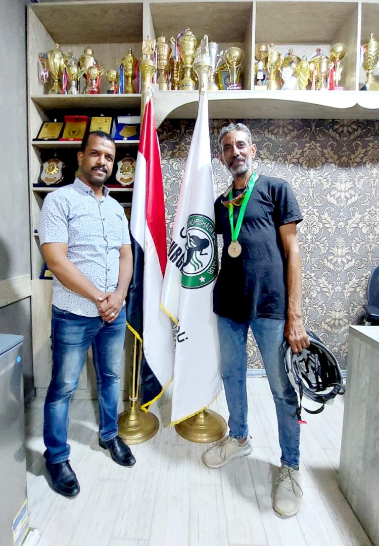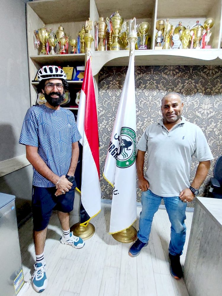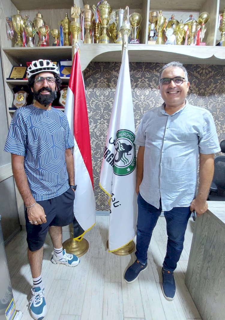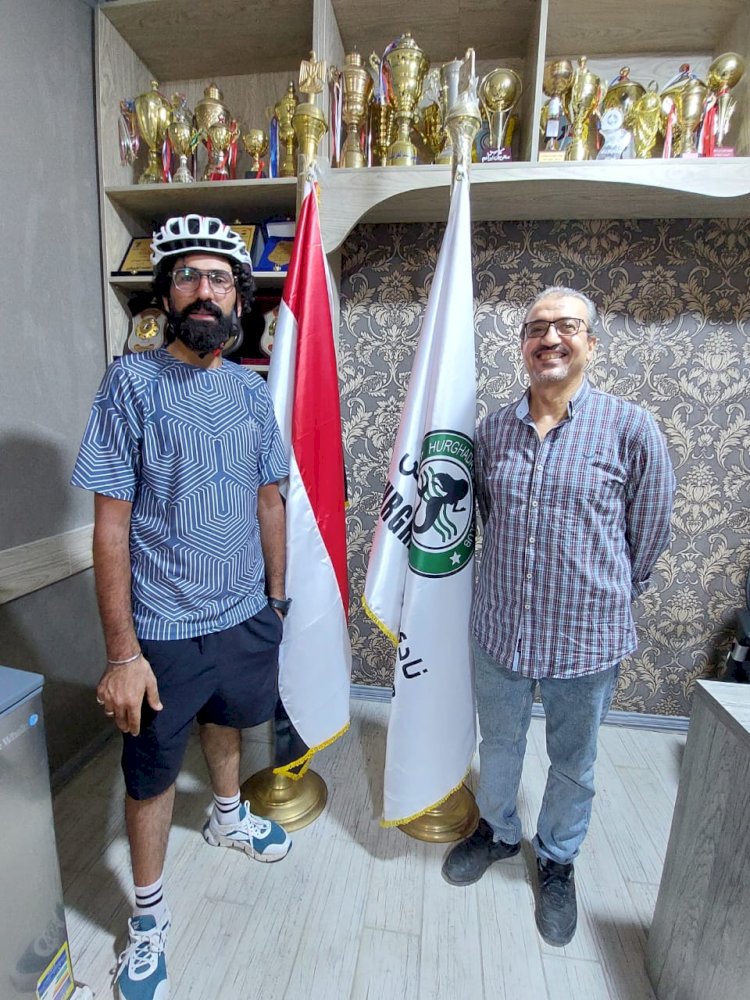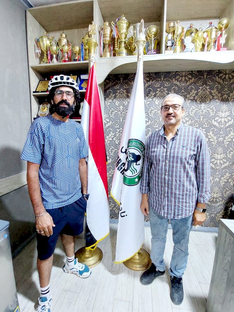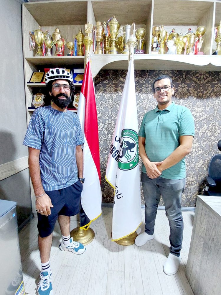 رئيس نادي الغردقة الرياضي يستقبل الرحالة محمد المصرى وفريقه