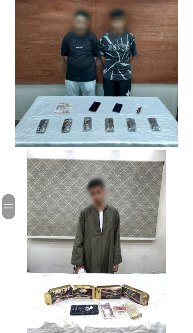 ضبط (عنصرين إجراميين "لأحدهما معلومات جنائية") بدائرة قسم شرطة السلام أول، وبحوزتهما (كمية من مخدر الأستروكس – 2000 قرص مخدر- كمية لمخدر البودر - فرد محلى وطلقتين - ميزان حساس - أدوات تصنيع المواد المخدرة). ضبط (عنصر إجرامى) بدائرة قسم شرطة الشروق، وبحوزته (2 كيلو جرام لمخدر الحشيش). ضبط (عنصرين إجراميين) بدائرة قسم شرطة مصر القديمة، وبحوزتهما (كيلو جرام لمخدر الشادو- سلاح أبيض). ضبط (عنصر إجرامى "له معلومات جنائية") بدائرة قسم شرطة الخليفة، وبحوزته (900 قرص مخدر– بندقية خرطوش وعدد من الطلقات). ضبط (3 عناصر إجرامية "لـ 2 منهم معلومات جنائية") ، وبحوزتهم (5 كيلو جرام لمخدر الأستروكس - 2 كيلو جرام لمخدر الحشيش- سلاح أبيض). تم إتخاذ الإجراءات القانونية.