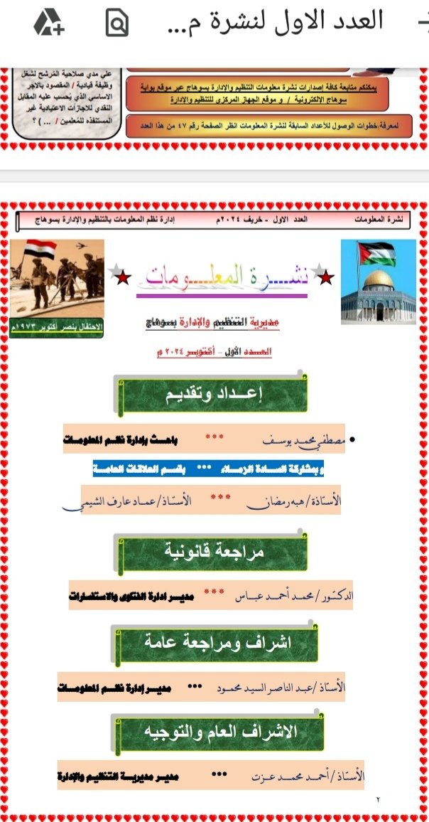 تحت إشراف عام وتوجيه أحمد محمد عزت مدير مديرية التنظيم والإدارة بسوهاج، صدر عدد خريف ٢٠٢٤ من نشرة المعلومات الربع سنوية، التى تعدها إدارة نظم المعلومات والتحول الرقمى بالمديرية.