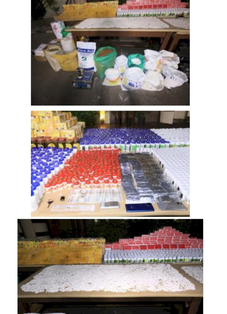 فقد أكدت معلومات وتحريات الإدارة العامة لمكافحة المخدرات بالتنسيق مع الأجهزة الأمنية المعنية قيام (4 عناصر إجرامية "أحدهم يحمل جنسية إحدى الدول" - لهم معلومات جنائية – مقيمين بنطاق محافظتى القاهرة والإسكندرية) بتكوين تشكيل عصابى تخصص نشاطه الإجرامى فى تصنيع العقاقير المخدرة والمؤثرة والمنشطات بكميات كبيرة وترويجها على عملائهم متخذين من محافظتى (القاهرة – الإسكندرية) مسرحاً لمزاوله نشاطهم الإجرامى. عقب تقنين الإجراءات تم ضبطهم ، وبحوزتهم (أكثر من 170 ألف قرص مخدر ومؤثر – كمية لمخدر الحشيش – أكثر من 210 ألف قرص وعبوة" منشطات" - 50 كيلو جرام بودرة "ترامادول" – كميات من المواد الكيميائية المستخدمة فى التصنيع - المعدات والأدوات المستخدمة فى التصنيع والتعبئة والتغليف – سيارتين) ، وبمواجهتهم إعترفوا بحيازتهم للمضبوطات بقصد تصنيع العقاقير المخدرة والإتجار بها. هذا وتقدر القيمة المالية للمضبوطات بـ ( 70 مليون جنيه تقريباً). تم إتخاذ الإجراءات القانونية.
