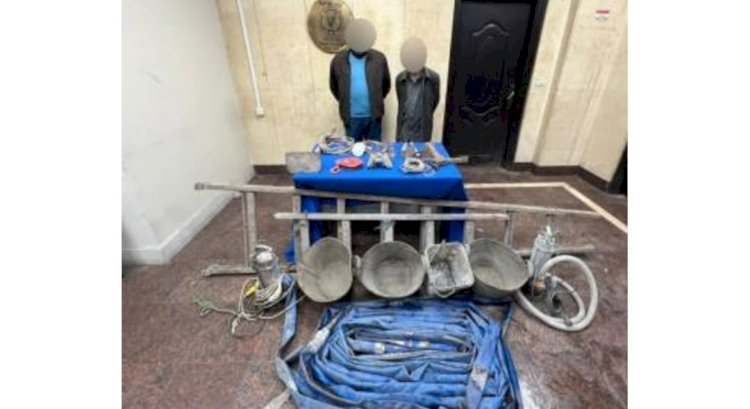 ضبط (شخصين) حال قيامهما بالتنقيب غير المشروع عن الآثار داخل ورشة نجارة بدائرة قسم شرطة الجمالية وتبين وجود (حفرتين كل منهما بقطر متر وعمق 15متر) وبحوزتهم (الأدوات المستخدمة فى أعمال الحفر والتنقيب).