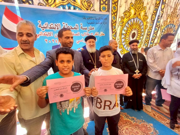 شهد المهندس عبدالمنعم قاصد مدير عام إدارة أبوتشت التعليمية شمالي قنا اليوم الأربعاء 29 مايو 20224م احتفالية تخرج طلاب الصف السادس الابتدائي للعام الدراسي 2024/2023م بمدرسة المحطةالإبتدائية المشتركة