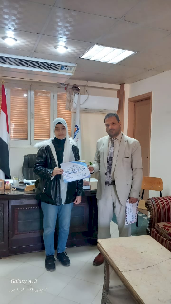 كرم المهندس عبدالمنعم قاصد مدير عام إدارة أبوتشت التعليمية شمالي قنا اليوم الاربعاء 31 الجاري بمكتبه الطالبة مريم كرم شوقي بمدرسة ابوتشت الثانوية بنات لحصولها علي المركز الاول علي مستوي مديرية التربية والتعليم بقنا في المسابقة الثقافية والقراءة الحرة