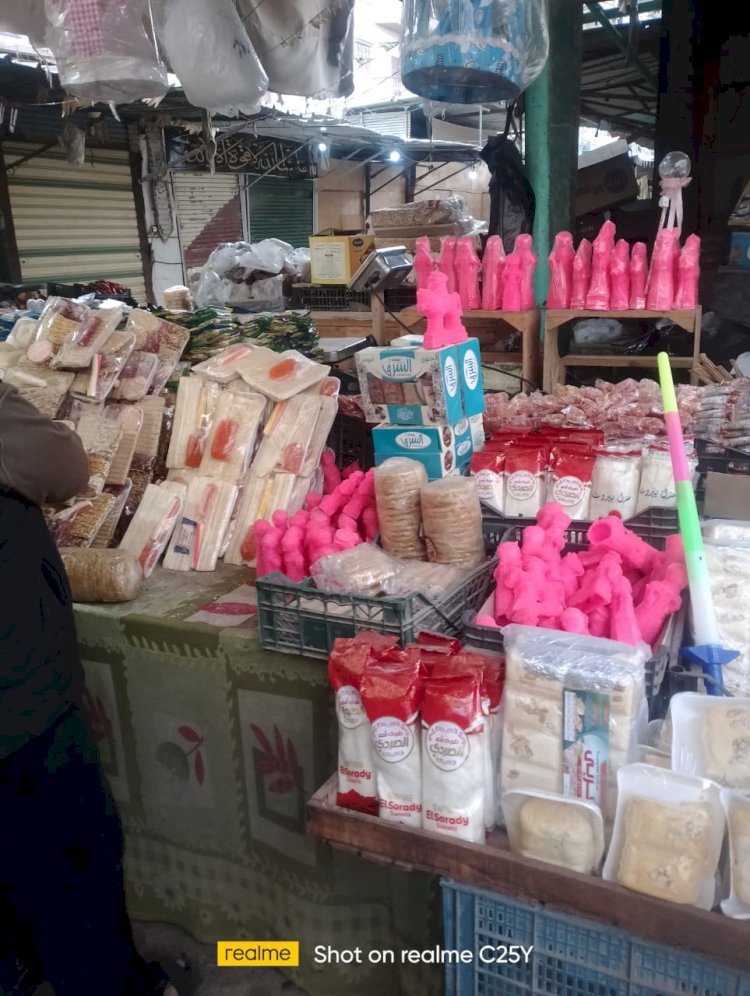 تم تحرير محضر عرض للبيع عدد 25 كجم حلوى عرائس المولد حمراء اللون غير صالحة للاستهلاك الآدمي في فرش حلويات محضر رقم 4143 لسنة 2025 جنح مطوبس