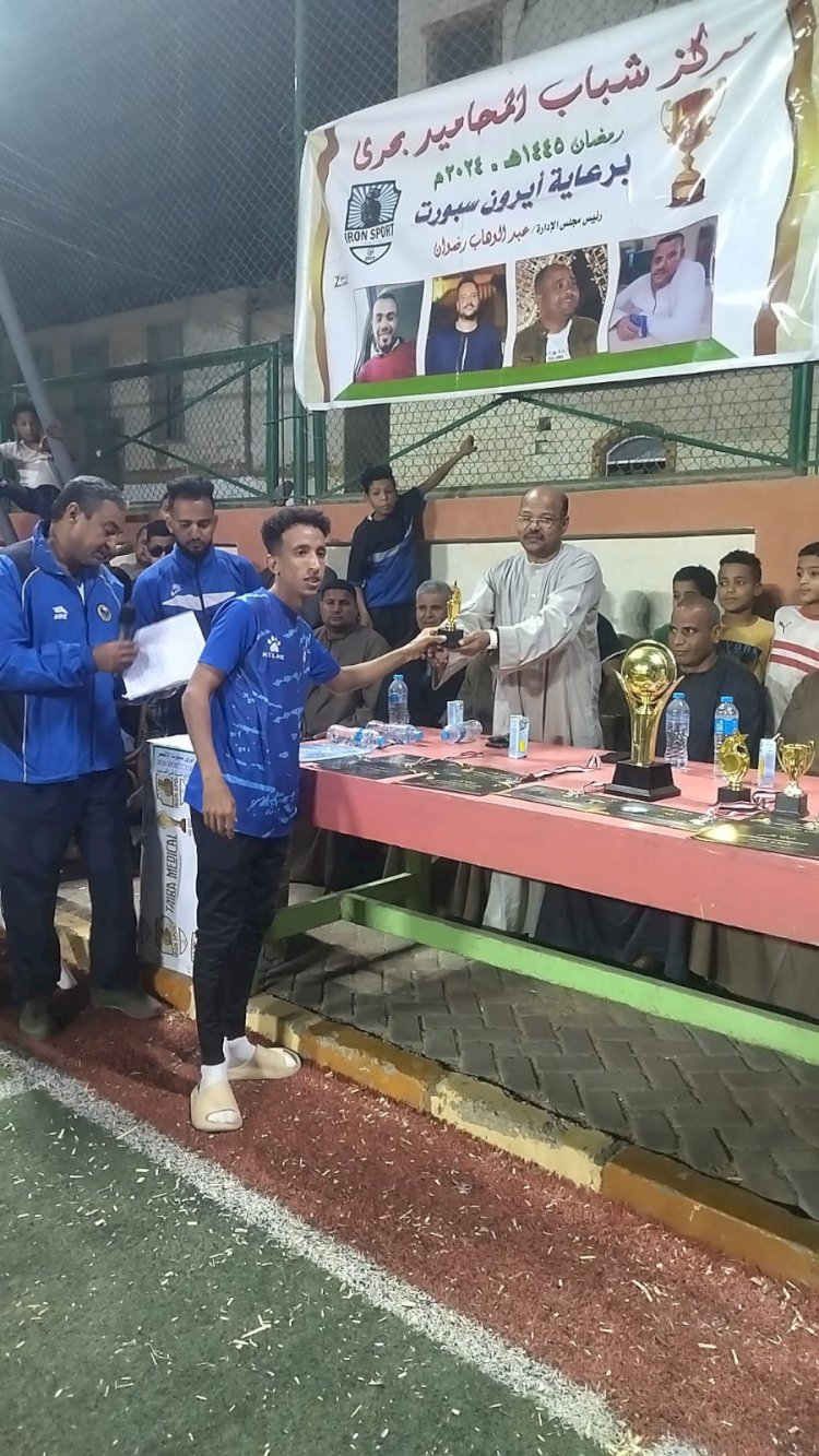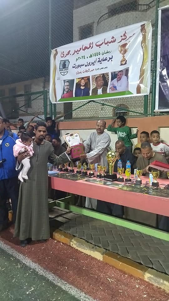 نظم مساء اليوم مركز شباب المحاميد بحرى حفل ختام دورة كرة القدم الرمضانية وذلك علي الملعب الخماسي بمركز شباب المحاميد بحرى وذلك بمشاركة ٣٠ فريق من أعضاء المراكز والأندية الرياضية والتي بدأت بحفل استعراضي فني تضمن تقديم فقرات فنية وألعاب