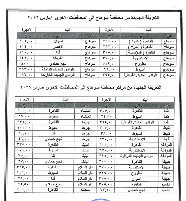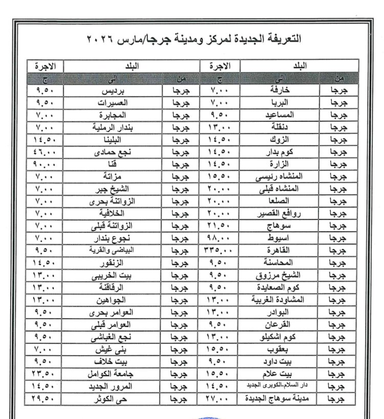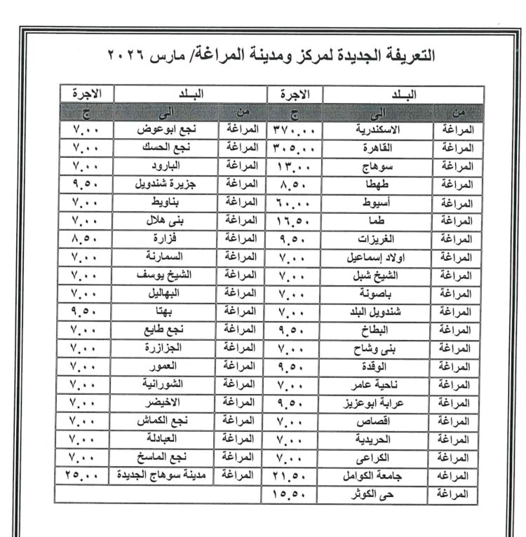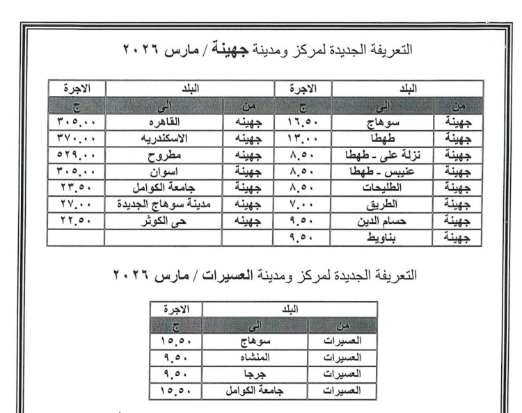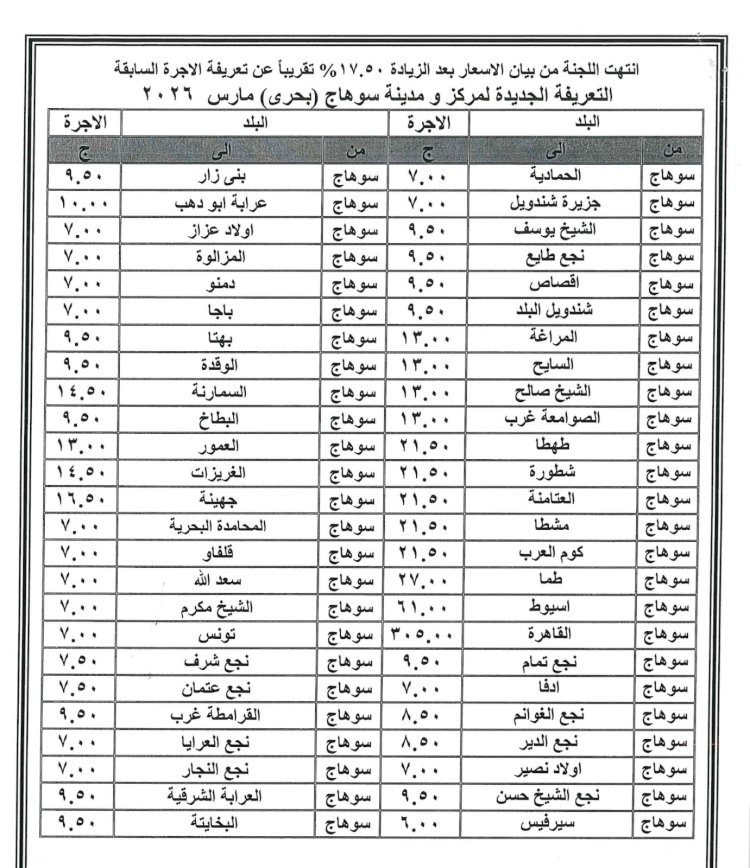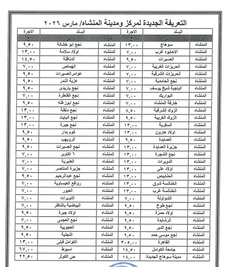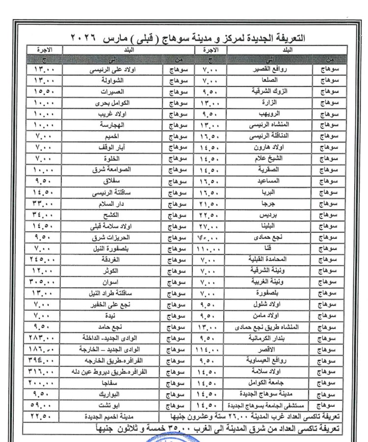 ننفرد بنشر زيادة تعريفة ركوب سيارات الأجرة بسوهاج
