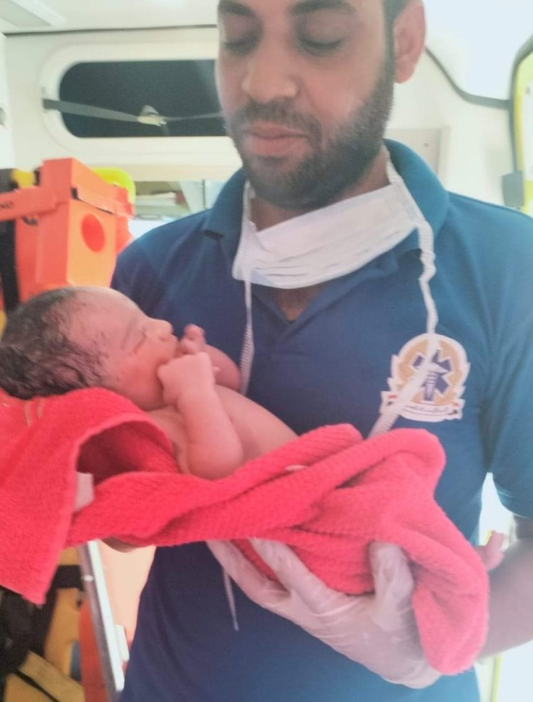 فكان القرار بمساعدتها لوضع مولودها داخل المنزل وتمكن فريق الإسعاف من توجيه ومساعدة الأم لوضع مولودها، وتلا ذلك قطع الحبل السري للطفل وتحفيزه وتجفيفه والتأكد من سلامة علاماته الحيوية وانتظام أنفاسه وكذلك تم متابعة جميع علامات الأم الحيوية وقياس نسبة الأكسجين ومعدل الضغط والاطمئنان على ألام والجنين.