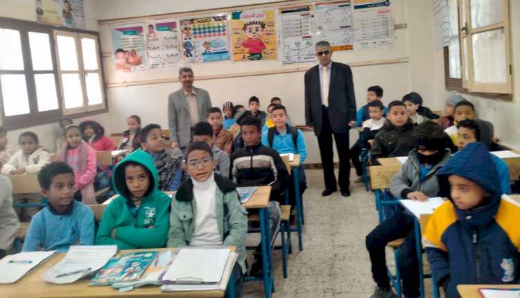 وخلال جولته داخل اللجان، تفقد وكيل الإدارة لجان الصفوف الرابع والخامس والسادس، حيث يؤدي 450 طالبًا الامتحانات في مادة التربية الدينية داخل 11 لجنة امتحانية، كما تابع لجان الصفين الأول والثاني أثناء أداء التقييم النهائي لمادتي اللغة العربية والتربية الدينية واطمأن على حسن سير الامتحانات والتقييمات دون معوقات.