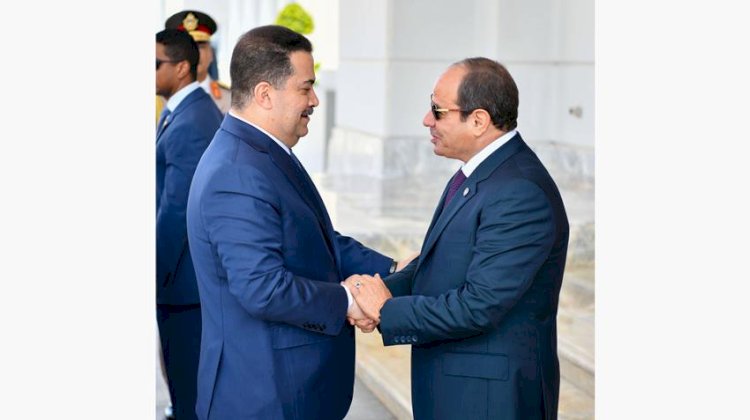 استقبل السيد الرئيس عبد الفتاح السيسي، اليوم، رئيس الوزراء العراقي "محمد شياع السوداني"، الذي يقوم بزيارة رسمية لمصر، على رأس وفد حكومي عراقي رفيع المستوى، يضم نائب رئيس الوزراء وزير الخارجية، ووزير التجارة، وعدد من كبار المسئولين العراقيين، وذلك بحضور الدكتور مصطفى مدبولي رئيس مجلس الوزراء، والسادة وزراء الخارجية، والإسكان، والاستثمار، والبترول، من الجانب المصري.