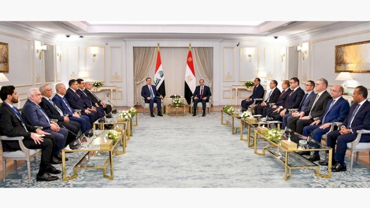 وأوضح المتحدث الرسمي باِسم رئاسة الجمهورية أن اللقاء تضمن الإعراب عن الارتياح للمستوى المتميز الذي وصلت إليه العلاقات بين الدولتين، التي تستند إلى رصيد تاريخي كبير من الأخوة الصادقة والدعم المتبادل بين البلدين والشعبين الشقيقين، وقد حرص السيد الرئيس في هذا الإطار، على تأكيد دعم مصر الكامل لوحدة العراق وسيادته وسلامة أراضيه، وكذا دعمها لجهود تحقيق الاستقرار والأمن والتنمية به، وتعزيز الروابط بينه وبين محيطه العربي، كما توافق الزعيمان على أن الظروف الراهنة تستوجب تكثيف العمل العربي المشترك، على المستويين الثنائي والجماعي، منوهَيْن في هذا الصدد إلى آلية التعاون الثلاثي بين مصر والعراق والأردن، ومؤكدَيْن مواصلة العمل على إنجاح مشروعاتها وتحقيق أهدافها، لتصبح نموذجًا للتعاون العربي والتكامل الإقليمي.