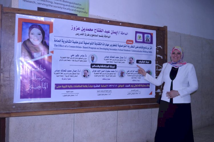 حصلت إيمان عبدالفتاح محمدين عزوز، الباحثة بقسم المناهج وطرق التدريس اللغه الإنجليزية بجامعة جنوب الوادى، على درجة الماجستير بتقدير ممتاز، وذلك عن رسالتها المعنونة: "أثر برنامج قائم على النظرية التواصلية لتنمية مهارات الكتابة التواصلية لدى طلبة الثانوية العامة". عقدت المناقشة في رحاب كلية التربية بجامعة جنوب الوادى، برعاية الدكتور أحمد عكاوي رئيس الجامعة، والدكتور عصام علي الطيب عميد الكلية. تكونت لجنة الإشراف من كل من الدكتور جمال محمد شحاته أستاذ المناهج وطرق التدريس اللغة الإنجليزية المتفرغ بكلية التربية جامعة المنيا، والدكتور عامر بكير علي أستاذ المناهج وطرق تدريس اللغة الإنجليزية المتفرغ بكلية التربية جامعة جنوب الوادي بقنا. وتكونت لجنة المناقشة والحكم من الدكتور عيد عبدالواحد علي أستاذ المناهج وطرق تدريس اللغة الإنجليزية وعميد كليتي التربية والتربية للطفولة المبكرة بجامعة المنيا، والدكتور جمال محمد شحاته عباس أستاذ المناهج وطرق تدريس اللغة الإنجليزية المتفرغ بكلية التربية جامعة المنيا، والدكتور محمد صفوت حسن أحمد، أستاذ المناهج وطرق تدريس اللغة الإنجليزية المتفرغ بكلية التربية جامعة الوادي الجديد.