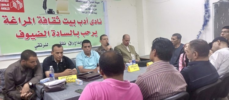 فى انطلاقة جديدة لنادي الأدب ببيت ثقافة المراغة ، بحضور جماهيري كبير أقام نادي الأدب ببيت ثقافة المراغة المهرجان الفني الثقافي للموهوبين واليافعين ، الذي أقيم بنادي الأدب ببيت ثقافة المراغة ، وكذا معرض الفن القصصي للموهبة / بهيثة أحمد ، وبحضور الأدباء والشعراء الكبار / الشاعر والأديب / حمدي حمدى هاشم حسانين والشاعر الأديب الكبير/ عصام مهران ، والكاتب الصحفي الكبير/ الكاتب أسامة أحمد خليفة وبحضور الموهبة الكبيرة/ تسنيم الأمير والموهبة الكبيرة الكاتبة / مريم حسن سلام ومجموعة كبيرة متميزة من المواهب وبحضور الإذاعي. محمد فؤاد الهوبري والأدباء الكبار أعضاء النادي والاستاذ / مصطفى عباس مدير الإدارة الثقافية والسيدة نادية مصطفي مديرة بيت الثقافة وأدار اللقاء الشاعر الكبير/ الشاعر محمد علام رئيس النادي.